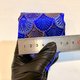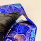 《錦浪蒼鱗》選用深藍色織錦緞,細膩的扇形紋路層層交疊,呈現如海潮般的光澤律動。布面在不同角度下展現細緻光影,為整體造型加入低調卻鮮明的重點。