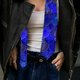 - 《錦浪蒼鱗》以深藍織錦緞呈現層疊扇紋,光影細緻如海潮。中性設計,無論搭配西裝、白襯衫或宴會/街拍休閒造型,都能展現清晰而優雅的風格。