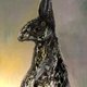 拉伸相機上的原始油畫,黑色兔子壁掛,尺寸 50/60 sm,19.6/23.6 英寸,未裝框, 全球範圍內免費送貨。