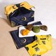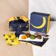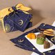 禮盒外包裝特別配上印有象徵中秋明月與Luna Cake月亮標誌的【風呂敷】裹布,運用品牌亮黃及夜藍二色交織的配色設計,具時尚感而又不失日式典雅氛圍,饋贈商業伙伴或摯愛親朋,盡顯尊貴不凡品味。