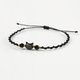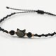 This is a thin macrame knot bracelet with a cute and chic black cat mother-of-pearl accented with onyx gemstone and gold beads.