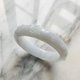 這件作品採用緬甸產半透明白色翡翠, 並雕刻著細緻的花朵與葉片。 石中帶有淡淡的薰衣草色調與柔和的綠色區塊,散發出清新且高雅的氣質。