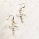 **十字架耳環-合金高亮仿珍珠款-925銀鍍金耳勾 女生禮物**