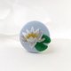 這是一款以夏日水畔盛開的、嬌嫩的白色睡蓮花為主題的刺繡胸針。