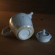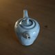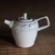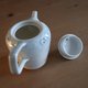 壺身由上而下慢慢收尖,視覺上帶一點高腳杯的優雅比例。整體以玄白釉為主,只在壺肩留下一圈藍灰色流痕,像是暮色剛剛落在壺身上的一道雲帶,其他地方保留大面積的留白,讓細緻開片慢慢浮現。