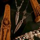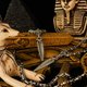 - 法老的威權凝結於刃首,王者的凝視化為永恆的象徵。匕首頂端以法老頭像呈現,象徵統治、守護與神授的力量,靜靜注視著時間的流動。 劍柄融合「真知之眼」,中央鑲嵌紅石榴石,如心臟般跳動,代表生命、意志與不滅的信念。