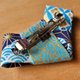 由和服腰帶的蝴蝶結的概念設計,手工栽切布條,製作成簡約大方的蝴蝶結造型,用台灣設計的如意線,搭配水引編繩技法,編織成如意結,裝點在大方結上,有如畫龍點睛一般,將和服元素容入平時穿搭。