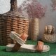 - 獨家帆布鞋,男女皆宜的模特,由黃麻和芥末色皮革製成,100%純天然植物。