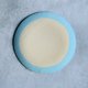 The underside and rim are glazed with a matte, textured blue finish.