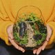 **使用材料**:15cm直徑 x17cm高 的水滴型玻璃缸、各類水草、水草專用泥、石頭/木頭/苔蘚(由創作者挑選設計)