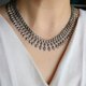這件來自法國1880年代的800銀頸鍊有著讓人過目不忘的特殊造型,長型的鍊結由三種設計組成,最上方是線條剛硬的串聯結構,往下延伸出星狀的圖形,最下方則是宛如垂墜花苞的柔和型態,豐富的線條與適度貼合頸間的長度讓作品呈現宛如蕾絲領般的視覺效果,是一件華美但不過分喧囂的作品。
