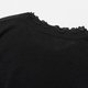 • 精緻細節:微寬的圓領設計,使頸部線條更顯修長;袖口與下襬則點綴著可愛的荷葉邊設計。