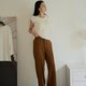 直褶顯瘦修長-落地厚棉西裝寬褲