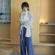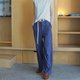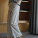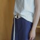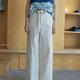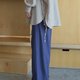 這條褲子真的非常顯腿長,亞麻的材質經過水洗後變得柔軟親膚,白色會比紫色挺刮一點點,我說這個事紫色,其實也可以說是藏青色,這個顏色在不同的光線下會有不同的反射,所以我們也不敢說得太過於絕對。