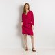 80年代復古風情 驚豔桃紅套裝:無袖鉛筆連身裙與短版西裝外套 2385,尺寸 S。深桃紅色。無內襯。前襟採雙鈕釦設計。無側口袋。無袖鉛筆連身裙側邊拉鍊式。標籤尺寸 40,但適合 S-M。我們的模特兒為 S-M 尺寸。此套裝依您偏好的穿著感,適合 S-M 尺寸。可選擇寬鬆或合身穿著。請參閱尺寸與保養標籤以獲取更多測量數據。