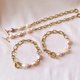 天然巴洛克珍珠與金色波浪OT釦鋼手鍊,亦或是配上可愛粉色系水晶,