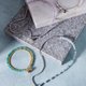 菫青石搭配黃銅古金的色澤,簡易穿脫的拉長石寶石磁釦,輕輕碰觸,尋找另一半的完美存在。可當作手鍊或頸鍊配戴。