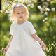 這件連衣裙飾有蕾絲花邊,背面飾有可愛的蝴蝶結。