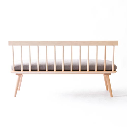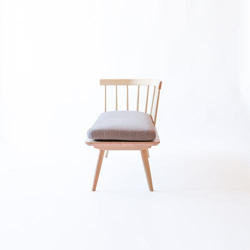 椅腳比起一般的長凳做得較為細。而且向外斜,漸漸變細的設計。這麼奢華真的可以讓多位大人坐嗎?好像聽得到有這樣的疑問,但事實上是不需要擔心的。除了挑選素材外,計算過的設計之上由擁有工匠技藝的職人細心、堅固地製作。另外這帶有圓潤感的椅腳不只簡約、也閃耀著個性感的絕妙設計。有著能長久愛用的氛圍。