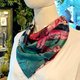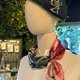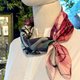 這款 50 公分正方形的絲巾,採用 100% 蠶絲製成,為日本製造。
