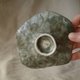手捏製成的波浪型小碟,有圈足的設計,放置在桌上就像一片荷葉。