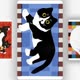 將以插畫的風格將貓咪繪製在幾何地毯背景上。