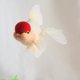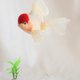 頭頂上紅色的肉瘤像貝雷帽一樣可愛,這就是丹頂。 牠純白的身體不只是單純的白,更融入了藍色、粉色等多種色彩。 臉部和魚鰭根部則帶有黃色或橘色調。 雖然是紅白品種,卻能欣賞到豐富的色彩變化。 尺寸:寬16cm x 高14cm