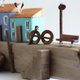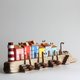 使用漂流木、螺絲/釘子(赤鏽處理)、白色木材(歐洲雲杉、歐洲冷杉等)、染色劑、油漆等手工製作。透過砂紙打磨,營造出歲月的痕跡。希望您能透過這件作品,感受到「潮聲、海鷗的鳴叫,以及風的聲音」。