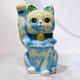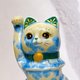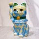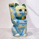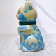 清水燒招財貓以獨特的花結晶工藝打造,展現出兩隻不同的縹藍漸變晶花,花紋錯落分布