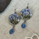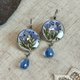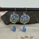 復古風格的耳環,帶有環氧樹脂製成的天然花朵。