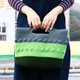 對於幾乎每天使用的手提包,除了美觀之外也要實用,以此為重心概念來設計了毛線花邊手提鉤織包。選用觸感舒適的牛奶毛線作主要線材,一年四季都能使用,並採用雙線技法使鉤織包能維持外型,放置日常出門小物也不會下垂,增加小提包的耐用度。