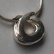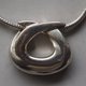 The three-dimensional pendant, showcasing the lustrous texture of silver, exudes a presence akin to modern art.