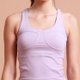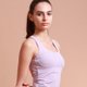 富潮流設計的馬甲款寬帶背心上衣,有集中托高視覺效果,較適合胸圍A-C cup以內, 前領為小U領,背部水平大挖空,長度為較比一般舊款短約4吋的短版上衣。