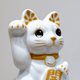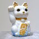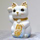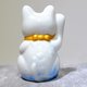 日本清水燒招財貓 花結晶 青白 開運 右 特小