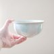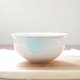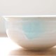 塑造成一個寬大的碗,表面施以光澤的白釉燒製而成,局部點綴著溫潤的淺藍色釉藥。