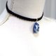 以濃郁的藍色為背景,點綴花朵和珍珠,搭配閃粉與白色線條,設計出優雅的吊墜。俐落的方形線條能讓頸部線條看起來更為修長。深沉的藏青色是秋冬季節的絕佳搭配單品。