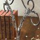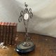 這款獨一無二的古董懷錶展示架,架身頂部有一隻造型精巧的鴯鶓金屬雕塑。支架主體採用鍛造金屬線條,新藝術風格自然藤蔓花卉,支架中央設有掛鉤,完美展示您的懷錶,讓時間的藝術以最優雅的姿態展現。橢圓形木質底座設計,邊緣飾有精細的扭紋金屬繩邊,為懷錶提供了古典而奢華的背景。