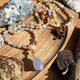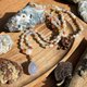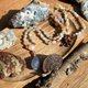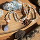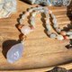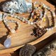 一串像蛋白石一般通透的天藍,有些帶有小水玉柄,也有小彩色和白色點綴。全也是來自沙漠的小石頭。