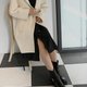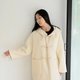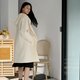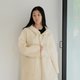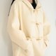 - 白色牛角扣-連帽長版羊毛外套大衣