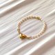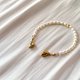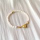 可愛的金色心形磁吸釦 搭配米形珍珠的設計款手鍊