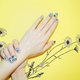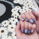 半成品的鉛筆線條、寫生風格的花卉圖案,更突顯出印花的輪廓。搭配流行的粉藍色,讓你散發清新淡雅的指上風采。