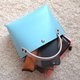 ◎ The thick, firm, and beautiful sky blue leather is accented with cafe au lait brown stitching.