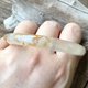 這只光感很好,焦糖黃與粉花都很甜美,修補痕就是有個灰色小區塊的部位(見圖),有一片小小的內紋(見圖),整體表面光滑無摳。