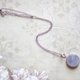 以濃郁的藍色為背景,點綴花朵和珍珠,搭配閃粉與白色線條,設計出優雅的吊墜。俐落的方形線條能讓頸部線條看起來更為修長。深沉的藏青色是秋冬季節的絕佳搭配單品。