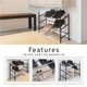 顏色:黑木紋 材質:鐵烤漆、木紋包膜 規格:側片*2 伸縮橫管*6 組裝後:62-115.5W*23D*51Hcm 外包裝:63*24*5 重量:1.74KG