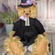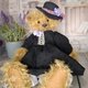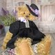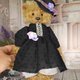 我為這隻熊熊縫製了洋裝和襯褲。熊熊的頭部戴著一頂裝飾著緞帶和手工製作的花朵的帽子。頸部也圍繞著一圈綴有花朵的髮帶。