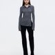 這是一件以趣味發散展開想像的針織襯衫,將側面的縫線隨意旋轉,再把門襟扭轉到左腰部,下襬調整為輕微不對稱並且刻意縮減圍度,雖然不能閉合卻增加了肆意的美感。