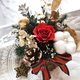 【花材】永生玫瑰、永生雪松、棉花、迷你滿天星、小樺木葉、尤加利葉、肉桂、法國小白梅、繡球花、松果、尤加利果