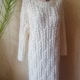 我編織了一件優雅的連衣裙,上面有非常美麗且非常複雜的圖案。該圖案由阿蘭斯和鏤空的組合組成。長度在膝蓋以下。長袖。圓領。