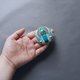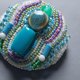 製作小巧作品時,首先會挑選主要的珠飾。為了讓這顆主珠展現最美的姿態,便會將刺繡一針一針地疊加,不留一絲空隙——色彩繽紛的珠飾們,便如同在低語交談般,營造出熱鬧而生動的氛圍。